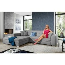 The Sorento corner sofa impresses with its fabulous looks and functionalities. The optimum shape of the backrest favours relaxation and leisure, something it shares with the seats, which are soft yet stable. This benefits the padding formed by continuous springs and T30 foam. The combination maximised comfort, supports the body properly and resists deformation. The corner sofa is great for relaxing during the day and at night. It is easy to transform the couch into a bed by pulling the unit from underneath to enjoy a sleeping surface measuring 210×126 cm. While it lacks bedlinen storage, it is still a great choice as a large bed for every night.The Sorento corner sofa merges modern design lines with superb comfort. This is the best choice if you are looking for upholstered furniture in delightful colours combined with great functionality.