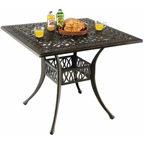 This patio cast aluminum table is ideal for you to have a meal in outdoor occasions.