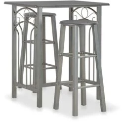 Made of durable wood and steel, this 3-piece bar set is weather resistant and will make a distinctive addition to homes, gardens, bars, pubs, or restaurants. Made of durable wood, the surfaces are easy to clean. The steel frames provide great stability. The chairs can be stored under the table when not in use. Additionally, the bar stools feature built-in footrests in two different heights, bringing extra comfort. The table and barstools are easy to assemble. Delivery includes 1 table and 2 barstools.