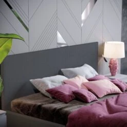 Home Discount offers this stunning new product with a modern stylish design, the Veronica King Size Ottoman Bed. This stunning bed frame is made from sturdy plywood. Unlike solid wood, which is strong only across the grain, plywood is tough regardless of directional force, making it very good at resisting sharp blows and wear and tear. This gorgeous ottoman bed when lifted offers a plenty of storage for that seasonal clothing you don’t know where to put. Fitting a standard king size mattress this bed frame is perfect for couples. With its textured appearance, this linen bed frame would look fantastic in any room interior, giving your bedroom a feeling of warmth and opulence.