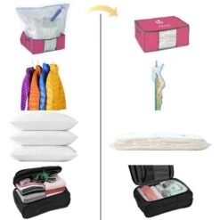 Manual Roll Vacuum Bags Included Our vacuum bag set includes 2 manual roll vacuum bags which can meet your different needs. NO NEED FOR A PUMP OR VACUUMÂ Our vacuum roll storage bags are easy to use! No need for a pump or a vacuum cleaner to compress them thanks to its counter-air technology! Just put your things inside the bag, zip it up, and simply roll the bag up. Air will be exhausted from one side of the bag and will not come in if the bag is closed. SPECIFICATIONS: