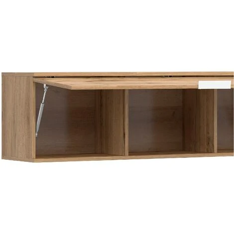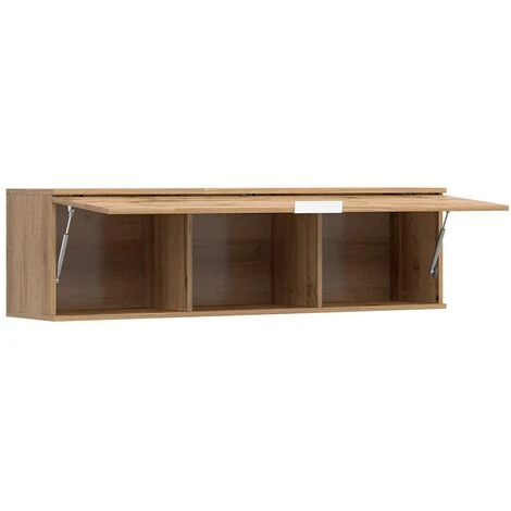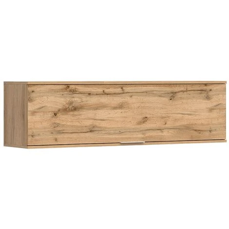 Modern Wall Cabinet Unit – Great Storage for Bedroom Living Room in Oak Effect – 135cm Wide with Lift Up Front – Zele
