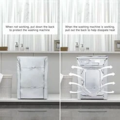 [Waterproof, Dustproof UV]: Suitable for laundry room, bathroom, balcony, garden. This outdoor washing machine cover is waterproof and protects from the sun, which will prevent your front loading washer/dryer from aging and malfunctioning.[Full Protection]: 4 side covers, protective cover for washing machine, keep away from dust, the back of the washing machine cover can be opened, it will not affect the heat dissipation during work.[Thickening fabric]: This cover of washer is made of 420D waterproof Oxford cloth, the fabric is improved, it is more durable than ordinary washing machine covers and does not transmit light.[Double-sided coating]: The front and back of the anti dust cover for front loading washing machine and dryer are silver, which can effectively block ultraviolet rays and waterproof, and prevent the washing machine and dryer from aging and rusting.[Double storage bags face]: There are bags of ran storage on both sides of the washing machine protector, the size is 25*30cm, which can hold laundry supplies or hangers.