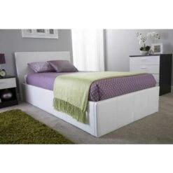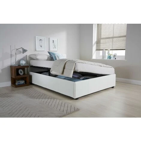 White Side Gas Lift Ottoman Storage Single 3ft Bed Faux Leather Sprung Slat