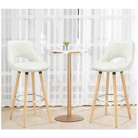 Ergonomic DesignThe curved backrest is in accordance with the ergonomic principle to fit the hips and back. which makes the seat comfortable. This ergonomic bar stools allow you to enjoy a more comfortable seating. | Soft And ComfortableThe backrest and seat are filled with high quality foam. making the wooden stool even more comfortable and relaxing. The backrest with a crescent-shaped hollow adds beauty to the bar chair. | Solid Wood Chair LegsThis side stool is supported by four high quality solid wood legs. It has a load capacity of 120 kg. | Circle FootrestThe 4 legs are reinforced by a metal circle. which increases the stability of the bar chair structure. This galvanized circle also works as a footrest and has a nice look. giving the high chair a modern appearance. |