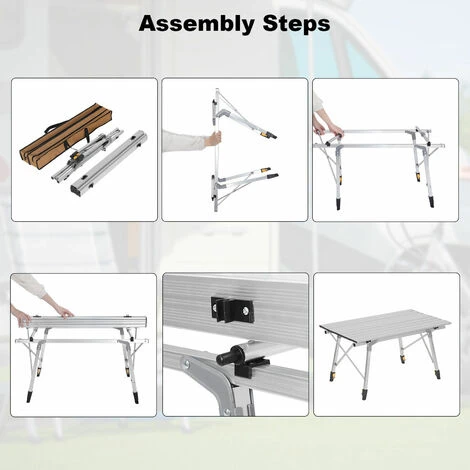 ??ADJUSTABLE HEIGHT AND LEGS: This portable roll-up table is easy to set up. You just need to fully extend the legs and tabletop base and then buckle the tabletop up and then adjust the legs to a suitable height. The height of the table can be adjusted between 45-72cm and each leg can be adjusted independently to suit different ground.