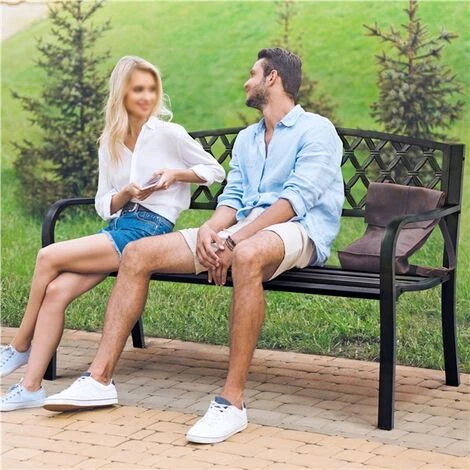 This outdoor iron bench with a traditional and elegant overall look, it is versatile for any patio. Mesh patterned backrest and iron slatted seat presents a hint of serene. Sturdy iron metal construction ensures durability and stability. Surface of this park bench is coated with a smooth and waterproof covering, which is fade-resistant and the color does not catch on cloth. Waterfall designed seat and armrests with round edge protect our customers from getting hurt and help better blood circulation.