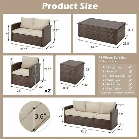 Easy to Assemble: This rattan wicker sofa set with two storage boxes will come in 4 boxes with all necessary hardware and detailed instructions, we promise to provide prompt service so please feel free to contact our customer service team if you have any questions.