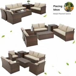 Freely Combination Furniture Set : The whole sectional furniture set comes with 2 single chairs, a loveseat, a three-seat sofa, 1 coffee table and 1 side table and can be freely combined to meet variety of occasions. (As shown in the picture)