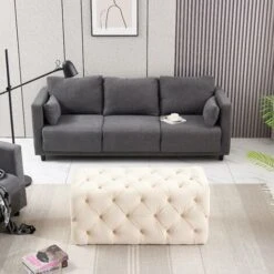 Melia Velvet Small Rectangle Pouffe, Ottoman Bench, Footrest, LUX Design, Button Detailed, Cream