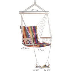 Outsunny Outdoor Hammock Hanging Rope W/ Footrest Armrest Patio Swing Seat Red Stripe